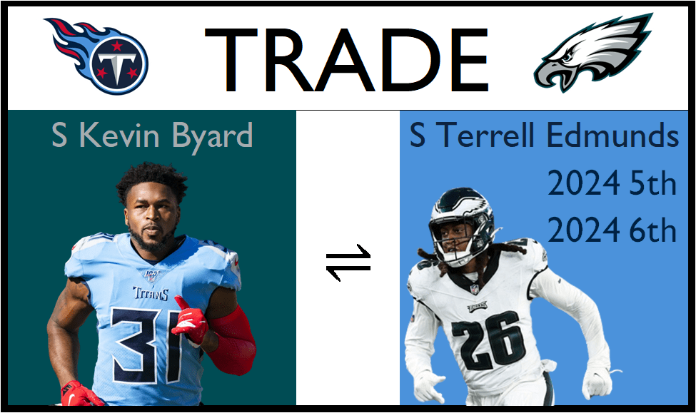 Longtime Titans starting free safety Kevin Byard has been sent to Philly for fellow safety Terrell Edmunds and 2024 fifth-round and sixth-round picks.