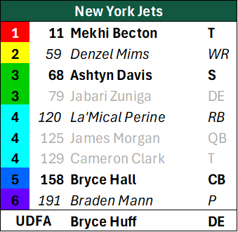 The two remaining players from this draft are Ashtyn Davis and Bryce Hall, both borderline starters in the secondary. Davis has mostly been a third safety in four years, playing in 54 games with 21 starts. Hall started seven games as a rookie, and was a 17-game starter in 2021. He lost the starting job following the acquisitions of Sauce Gardner and D.J. Reed, and slipped to fifth on the depth chart.